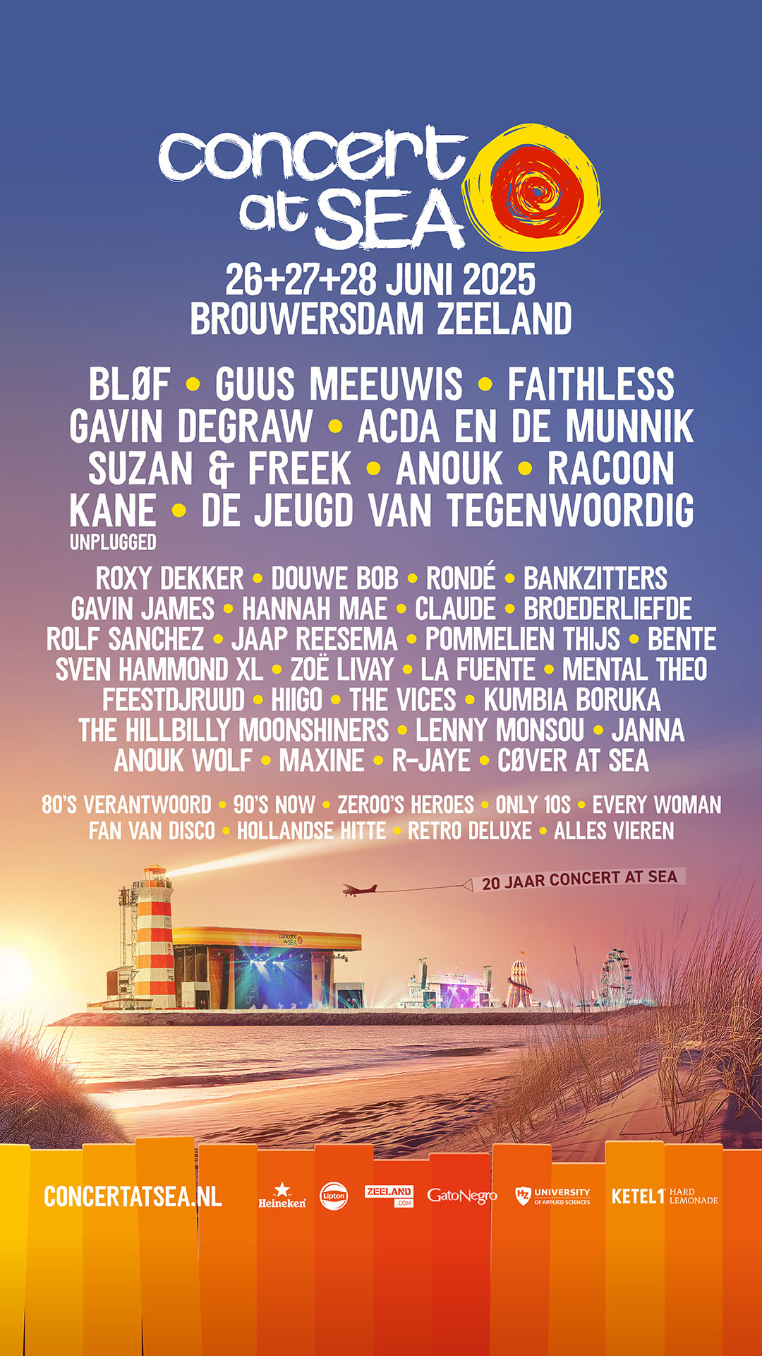 BLØF • GUUS MEEUWIS • FAITHLESS • GAVIN DEGRAW • ACDA EN DE MUNNIK • SUZAN & FREEK • ANOUK • RACOON • KANE (UNPLUGGED) • DE JEUGD VAN TEGENWOORDIG • ROXY DEKKER • DOUWE BOB • RONDÉ • BANKZITTERS • GAVIN JAMES • HANNAH MAE • CLAUDE • BROEDERLIEFDE • ROLF SANCHEZ • JAAP REESEMA • POMMELIEN THIJS • BENTE • SVEN HAMMOND XL • ZOË LIVAY • LA FUENTE • MENTAL THEO • FEESTDJRUUD • HIIGO • THE VICES • KUMBIA BORUKA • THE HILLBILLY MOONSHINERS • LENNY MONSOU • JANNA • ANOU WOLF • MAXINE • R-JAYE • CØVER AT SEA • 80’S VERANTWOORD • 90’S NOW • ZER00’S HEROES • ONLY 10S • EVERY WOMAN • FAN VAN DISCO • HOLLANDSE HITTE • RETRO DELUXE • ALLES VIEREN